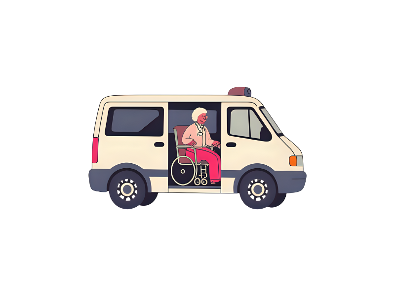 特徴: 運転手が介護資格を持っているとは限らず、身体的な介助は原則行われませんが、事業者によっては介護資格を持つドライバーが介助サービスを提供している場合もあります。車いすやストレッチャーのまま乗車できる車両が使用されます。
